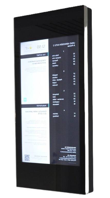 Markkinoiden ainoana toimijana tarjoamme nyt myös digitaaliset porrasnäytöt kuukausiveloitukseen kuuluvana, joilla tiedottaminen onnistuu kaikille asukkaille reaaliaikaisesti. Asukkaiden nimien päivittäminen on nopeaa ja taloyhtiön vuokrattavien tilojen varaukset on helppo tehdä kosketusnäytöllä. Paperiset saunalistat ja sotkuiset ilmoitustaulut jäävät historiaan porrasnäyttöjen myötä. Asukkaat huomaavat paremman palvelun merkityksen joka päivä porrasaulassa liikkuessaan.